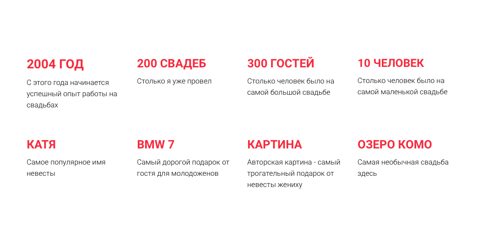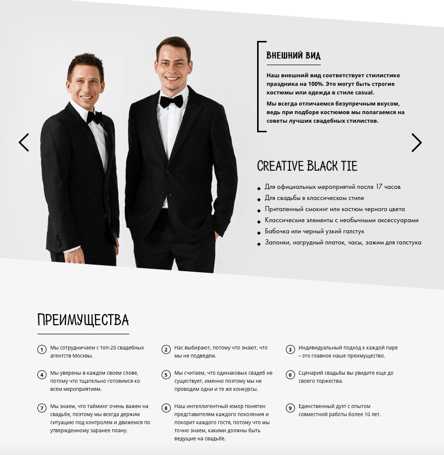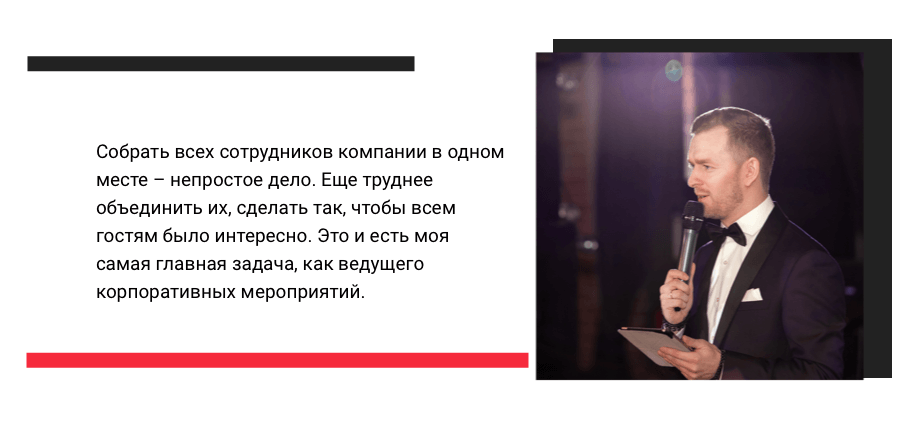 Начнем того, что стоит поблагодарить Ксению Миронову за проделанную, честную и качественную работу копирайтера. Я обратился к ней за разработкой концепции структуры сайта для ведущего свадеб. Так она еще прописала все текстовые блоки, всех разделов и придумала как можно интересно подать инфографику на сайте! В отличии от других она не гонится за количеством символов в тексте (это для копирайтера деньги), а наоборот старается емко отразить главные мысли и суть в нем. Еще что важно, Ксения действующий свадебный специалист, поэтому она знает как правильно подать информацию на заданную тему, подчеркивая правильные и нужные моменты. Это был мой первый опыт создания сайта и я очень рад, что результат превзошел все мои ожидания! По цене более чем адекватно, сроки приемлемы. Что получилось можно увидеть на моем сайте. Кстати Ксения еще была автором моего видео промо, но это уже другая история!