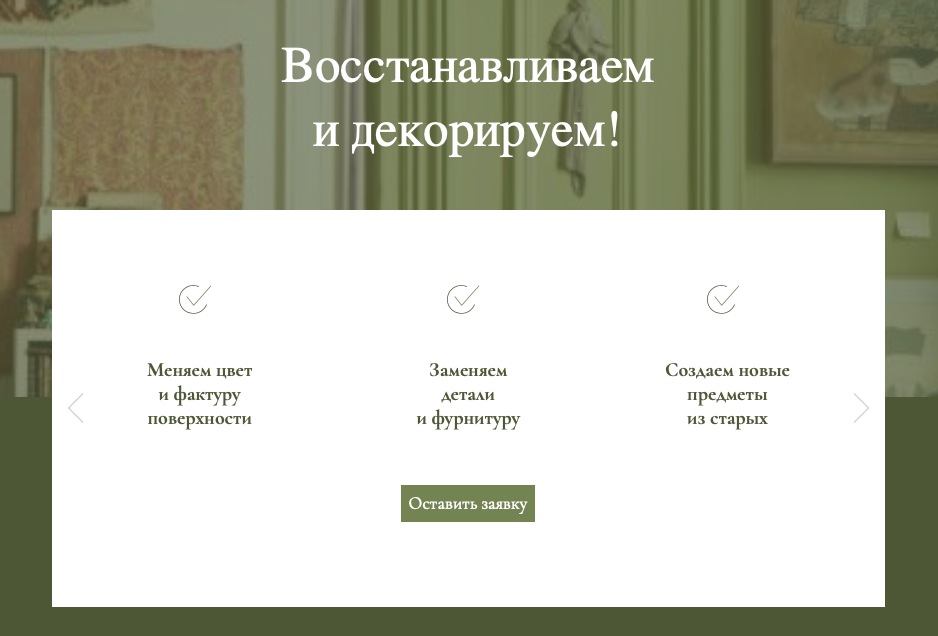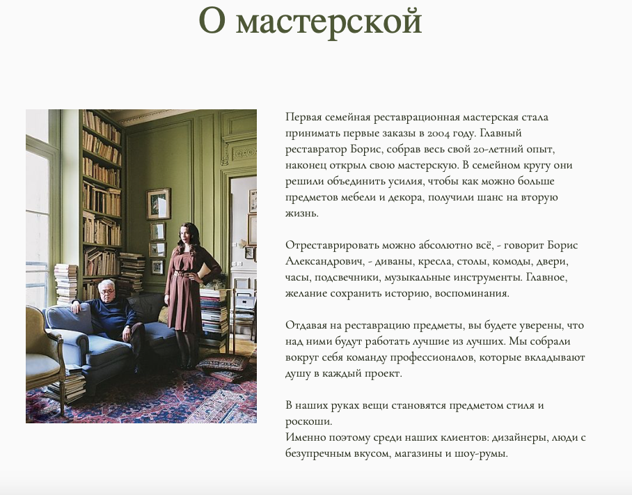 Я и моя семья занимаемся реставрацией мебели. Обратилась к Ксении Мироновой за помощью в создании сайта. Ксению знаю уже давно и за результат ее работы не беспокоюсь, знаю что работа будет сделана на отлично. К любым проектам или решению задач она подходит особо щепетильно, скрупулезно и порой с чувством нездорового перфекционизма! Но что особенно радует в работе Ксении, что она умеет предвосхищать ожидания своих клиентов!
