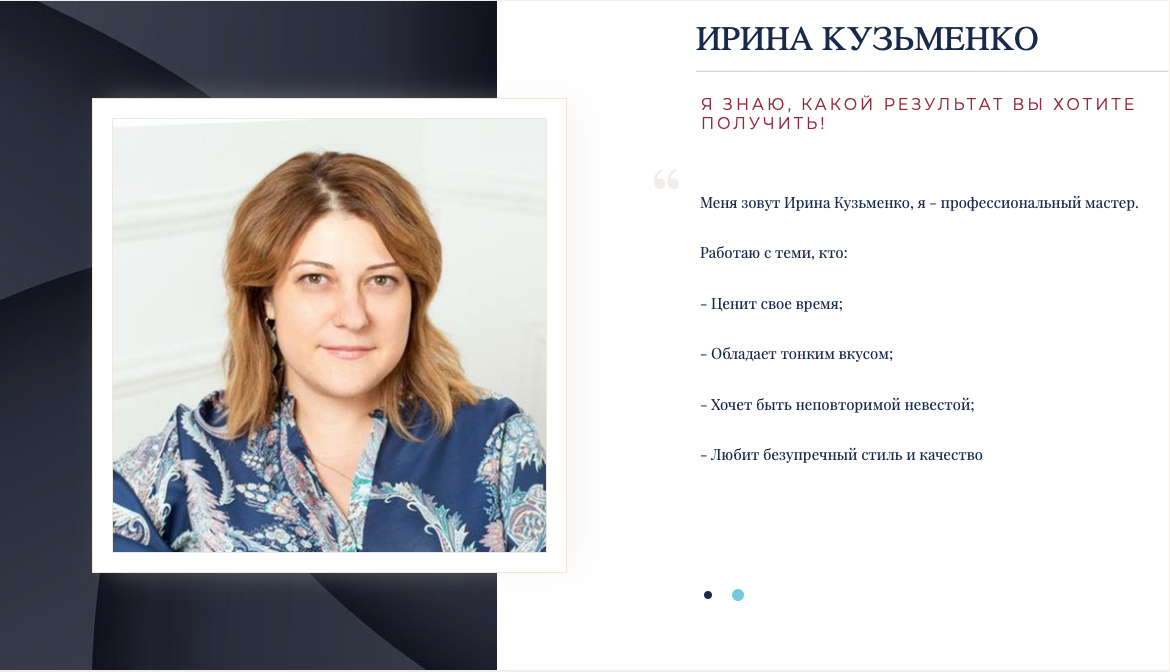 Я, Кузьменко Ирина-свадебный стилист. Когда создавала свою страничку, группу ВК, сайт столкнулась для меня проблемой написанием профессионального текста, Ксения Миронова здорово помогла с копирайтингом, текст стал интересен, приятно читабельным, по статистике увеличились подписчики группы и сайта.